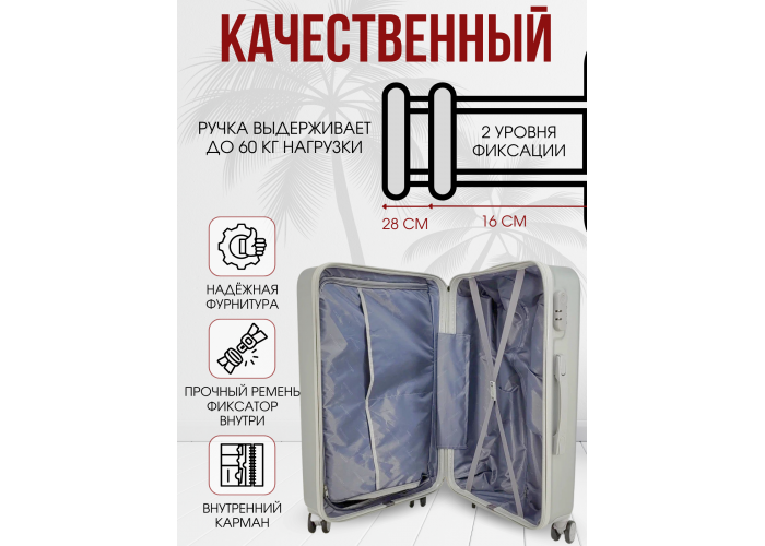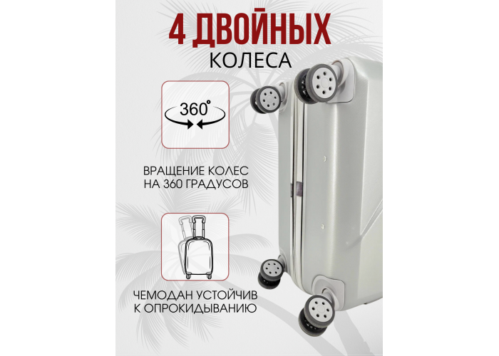 Чемодан оснащен удобной телескопической ручкой с 2-я уровнями фиксации для перемещения чемодана с помощью 4 двойных колес с поворотами на 360 градусов. Для открытия и закрытия выдвижной (телескопической) ручки нужно нажать на кнопку ее блокировки, а затем потянуть ее вверх или вниз. Так же с верхней стороны имеются дополнительная ручка для переноски.