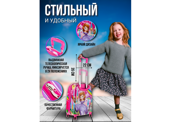 Легкий, удобный детский чемодан на колесиках, с героиней популярного мультфильма «Микки Маус».
