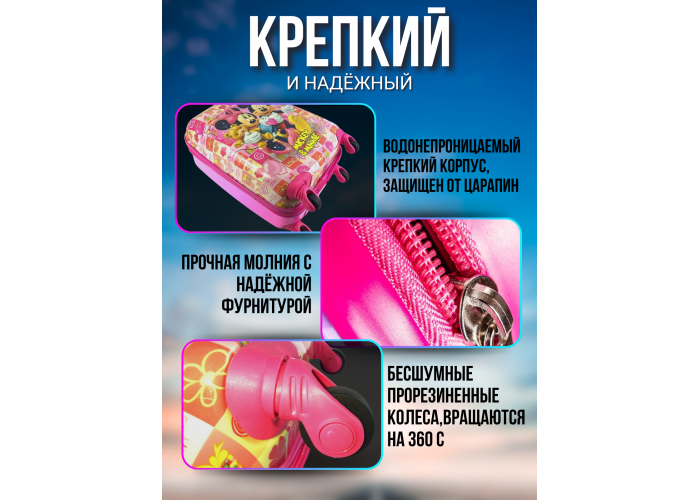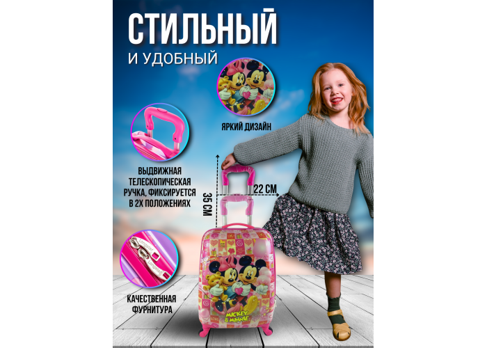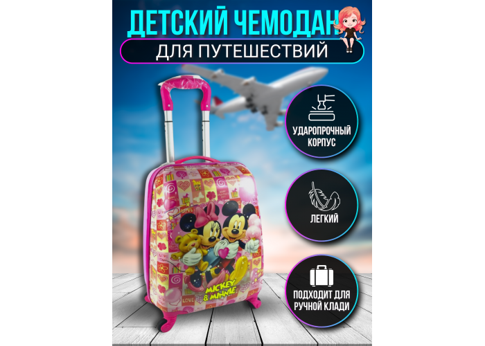 Чемодан детский, 4 колеса на подшипниках, выдвигающаяся металлическая ручка, материал поликарбонат, размеры чемодана: ШхВхГ: 27х44х20см
