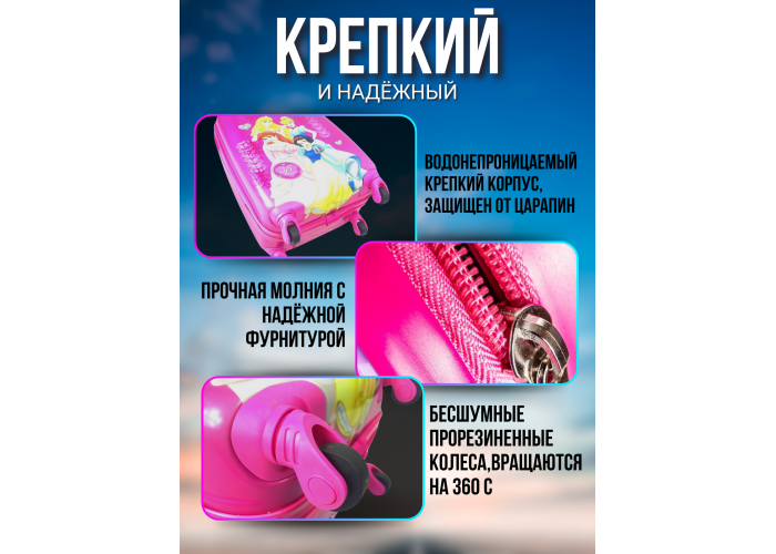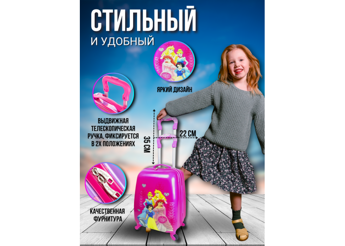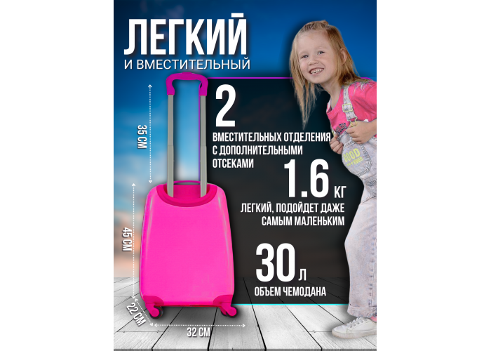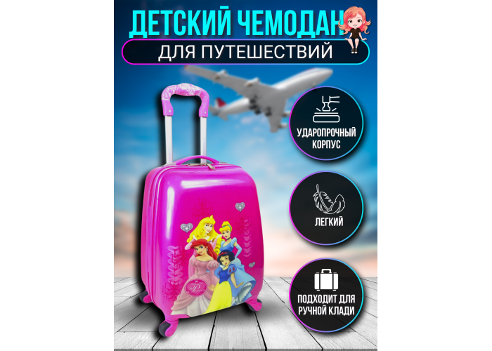 Чемодан детский, 4 колеса на подшипниках, выдвигающаяся металлическая ручка, материал поликарбонат, размеры чемодана: ШхВхГ: 27х44х20см