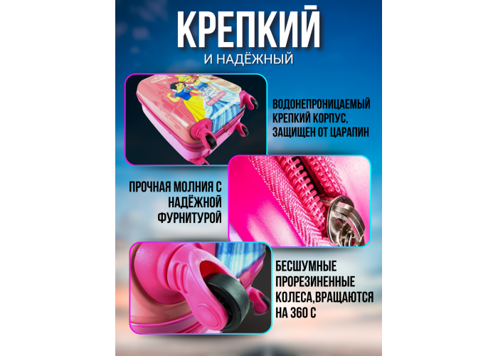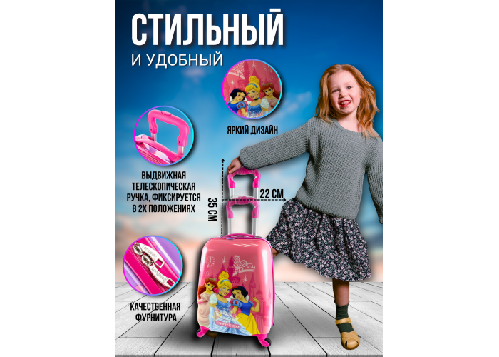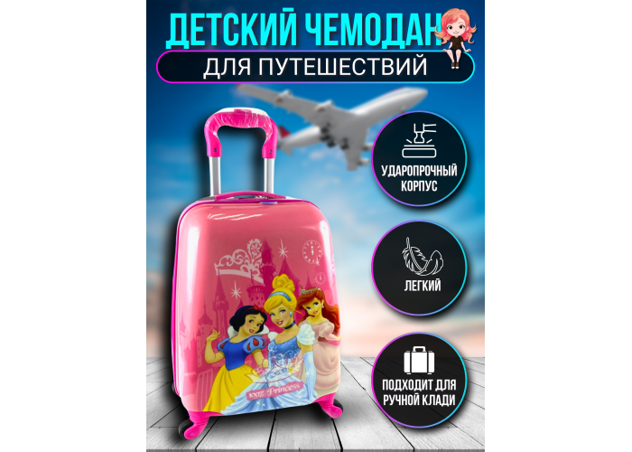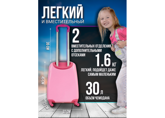 Чемодан детский, 4 колеса на подшипниках, выдвигающаяся металлическая ручка, материал поликарбонат, размеры чемодана: ШхВхГ: 27х44х20см